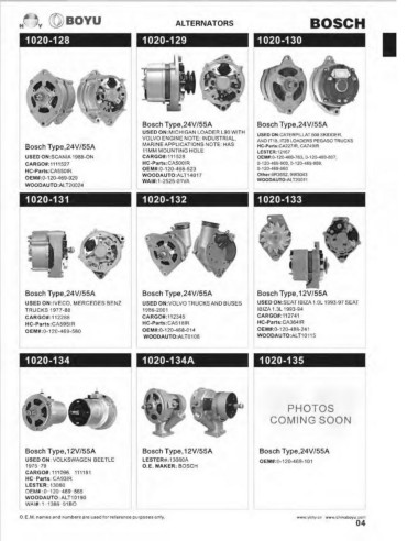 Bosch Type,12V/55A   Bosch Type, 12V/55A   Bosch Type,24V/55A   Bosch Type, 12V/55A   Bosch Type, 12V/55A   Bosch Type,24V/55A